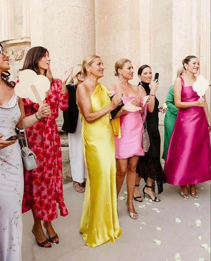 Cocktail dresses, jumpsuits, pantsuits — all are welcome! Feel free to play with textures, colors, and silhouettes. Just steer clear of white (that one’s reserved 😉).